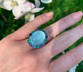 - Sensationaller Milky Aquamarin Ring mit Saphiren und Smaragden 4.789,92 €