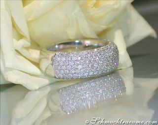 Dieser schwer gefertigte Ring ist rundum mit Brillanten ausgefasst. Ein unablässiges Strahlen und Funkeln bei jeder Bewegung ist somit garantiert.