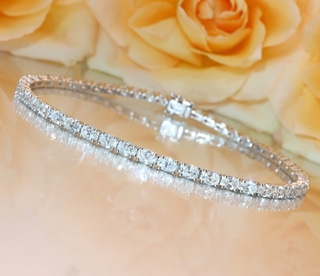 Classic lines and a touch of art deco combine in this diamond tennis bracelet to create a piece of jewelry that is created with great attention to detail.