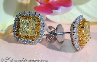 Also with these stately long as well as high-carat earrings, set with yellow and white diamonds, we present another piece of top class jewellery.