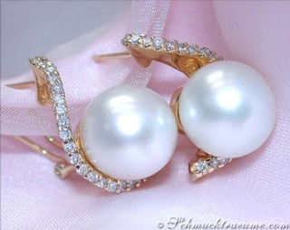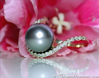 First, the earrings are dominated by beautiful tahitian pearls: perfectly rounded, totally flawless, fine luster, silky smooth skin, anthracite-silver shimmer.