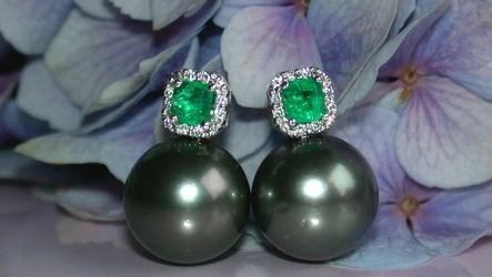 • Bildschöne Tahitiperlen Ohrstecker mit Smaragden