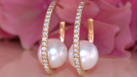 • Feminine Brillanten Creolen mit Süßwasserzuchtperlen