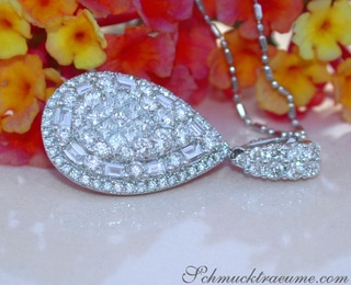 Ausgesuchter Brillant Tropfen Anhänger mit Princess- und Baguette Diamanten