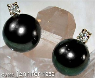 First, these studs are dominated by two tahitian pearls - perfectly rounded, completely flawless, silky smooth skin, high gloss luster. One diamond each is set above.