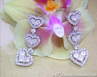 A highlight for ladies who value unusual pieces of jewelry in interesting designs, excellent manufacturing and excellent stone quality: These extravagant diamond earrings easily exceed even the highest expectations!
