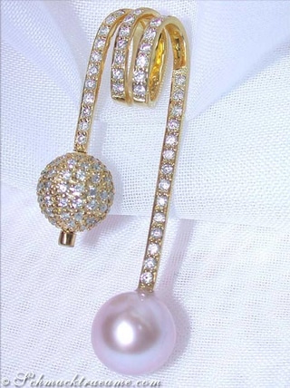 On the other side, here a little further down, an exquisite golden Southsea Pearl is attached to the end of the diamond rail: radiant golden, completely flawless, perfectly rounded, silky smooth skin and the very best high-gloss luster!