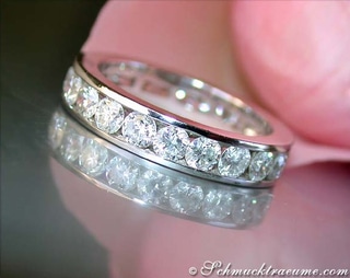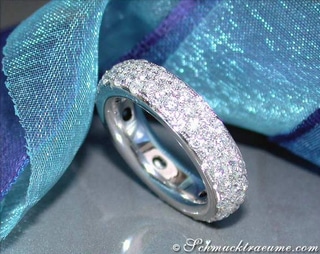 These three absolutely identical eternity rings in yellow, white and rose gold are set all round with 27 diamonds each, i.e. a total of 81 brilliant-cut diamonds.