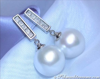A solid white gold bar set with channel-set diamonds is followed by a flawless, perfectly rounded southsea pearl: silky smooth skin, the very best luster and a gorgeous silver white shimmer.