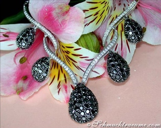 Underneath them now hang two drops, which are completely paved with deep black diamonds on the front.