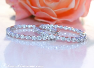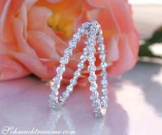 These huge hoop earrings are set with diamonds on the front and also on the inner back side. This creates a tremendous sparkle and flashes - from all sides, with every movement.