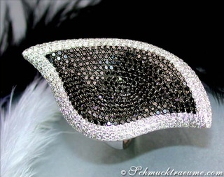 This black and white diamonds leaf style ring convinces with puristic shapes and definitely sets unusual accents.