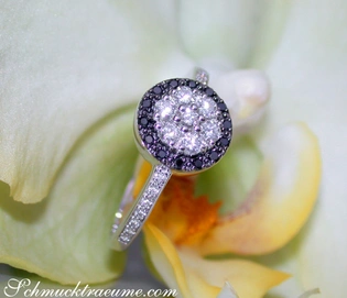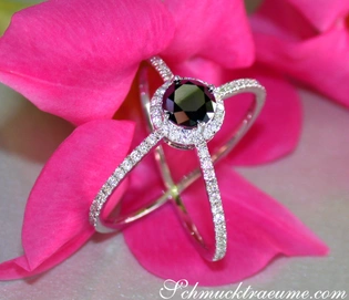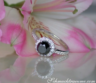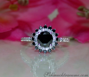 Attraktiver schwarzer Diamant Solitär Ring mit Brillanten