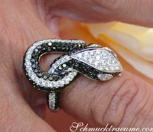 Extravaganter Schlangen Ring mit schwarzen Diamanten