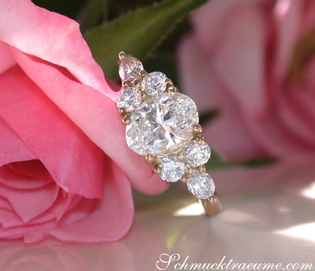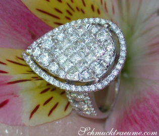 Einzigartiger Diamanten Ring im Tropfen Design (Brillant & Princess Schliff)