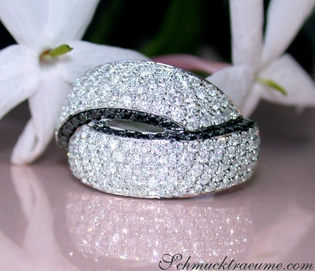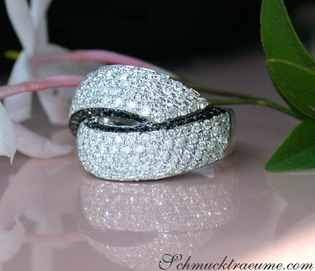Verschlungener Brillanten Ring mit schwarzen Diamanten