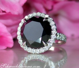 Spektakulärer schwarzer Diamant Solitär Ring mit Brillanten (14,58 ct.)