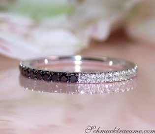 Wandelbarer Memory Ring mit weißen und schwarzen Diamanten