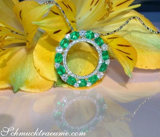 Attraktiver Smaragd Anhänger mit Brillanten (Kreis Design)