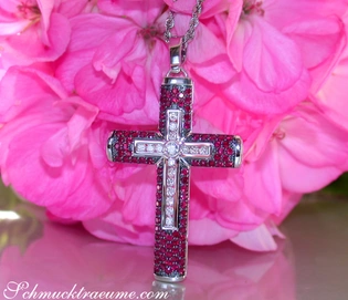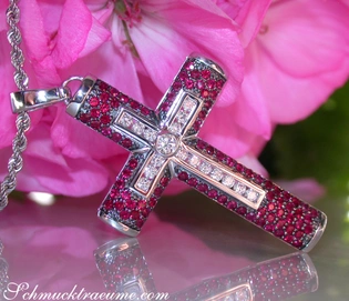 Grandioser Kreuz in Kreuz Anhänger mit Rubinen