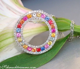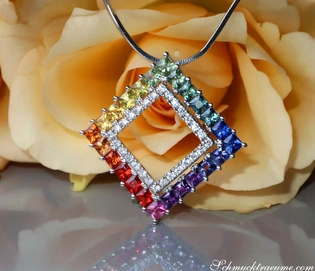 Zauberhafter Regenbogen Saphir Brillanten Anhänger