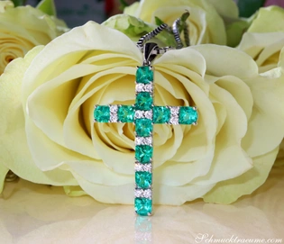 Bildschöner Smaragd Kreuz Anhänger mit Brillanten
