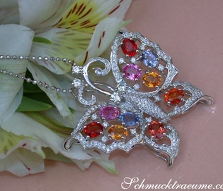 Auffallender Brillanten Schmetterling Anhänger mit Regenbogen Saphiren