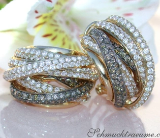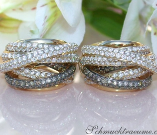 Mehrreihige Brillanten Ohrstecker mit naturbraunen Brillanten