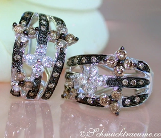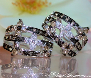 Edle Blüten Ohrstecker mit naturbraunen & weißen Brillanten