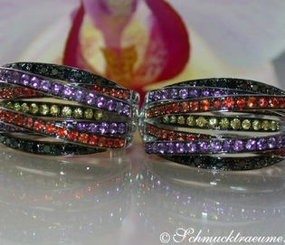 Ungewöhnliche Ohrringe mit schwarzen Diamanten, Amethysten & Saphiren