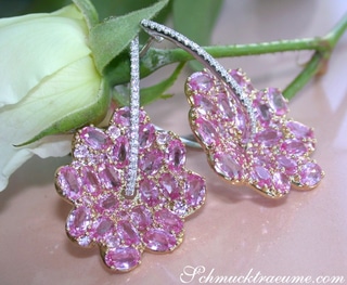 Prächtige Rosa Saphir Ohrringe im Blüten Design