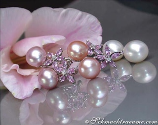 Traumhafte Pastell Süßwasserperlen Ohrgehänge mit Saphiren