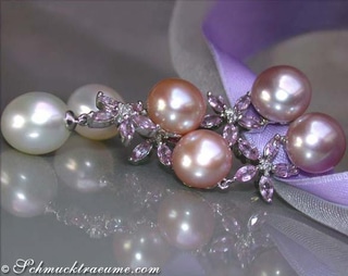 Edle Pastell Süßwasser Perlen Ohrgehänge mit Diamanten