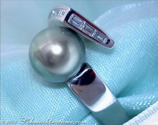 Edler Tahitiperle Ring mit Diamanten (Baguette & Brillant Schliff)