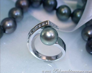 Vollmassiver Tahitiperle Ring mit Brillanten