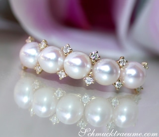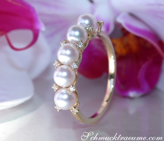 Femininer Baby Akoya Perlen Ring mit Diamanten
