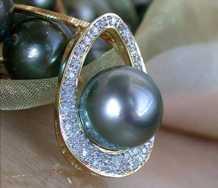 Bildschöner Tahitiperle Brillanten Anhänger im Mikimoto Design
