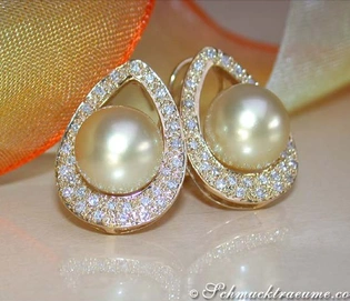 Wundervolle goldene Südseeperlen Ohrstecker im Mikimoto Design