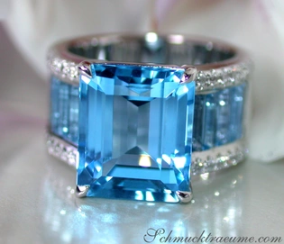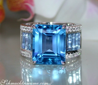 Extra stattlicher Blautopas Ring mit Diamanten