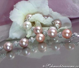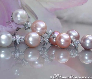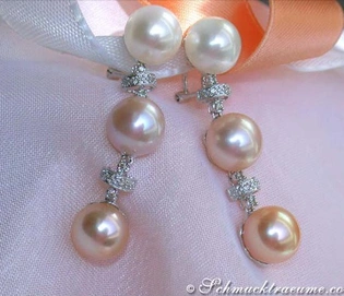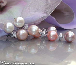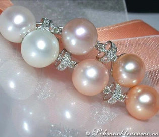 Edle Pastell Süßwasser Perlen Ohrgehänge mit Diamanten