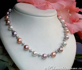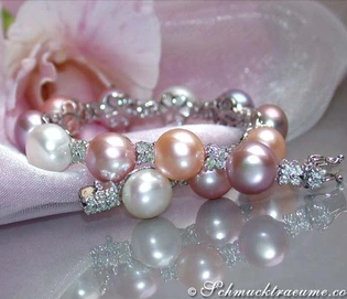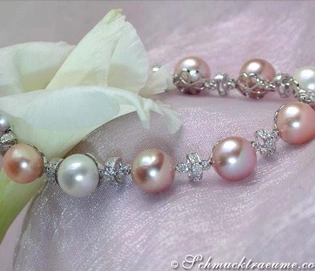 Feinstes Multicolor Süßwasser Perlen Brillanten Armband