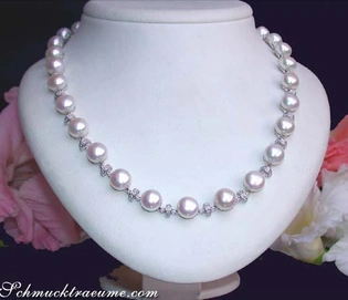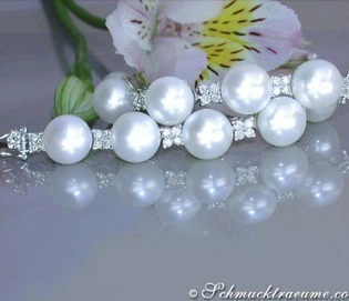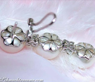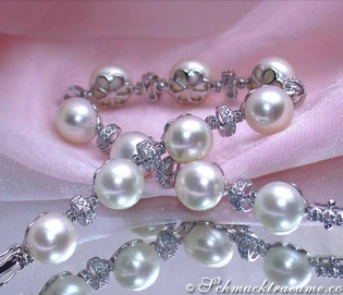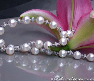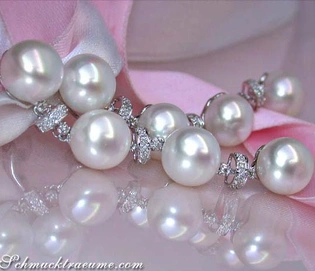 Die Perlen werden wiederum durch solide Weißgoldglieder verbunden, die apart designt und mit Diamanten ausgefasst sind. Geschlossen werden diese Ohrgehänge durch einen stabilen Clip-Bügelverschluss, der für absoluten Tragekomfort sorgt.