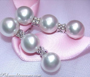 Über die Gesamtlänge dieses Ohrschmucks reihen sich zunächst je drei große Zuchtperlen aneinander - strahlend weiß, völlig makellos, feinster Lüster. Jede einzelne Perle ist für sich in ein stabiles Weißgoldkörbchen gesetzt. Das heißt: Die Perlen sind sicher befestigt, ein etwaiger Verlust ist völlig ausgeschlossen und der Ohrschmuck ist beim Tragen auch auf der Rückseite hübsch anzusehen.