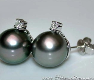 Feinste Tahitiperlen Ohrstecker mit Brillanten in Weißgold 585