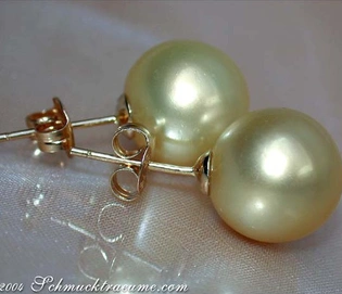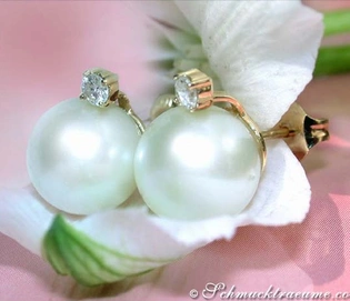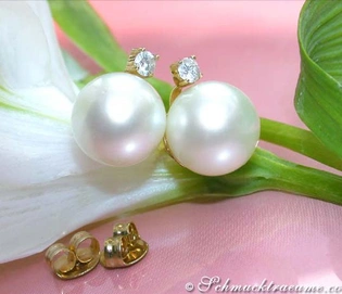 Feinste goldene Südseeperlen Ohrstecker mit Brillanten