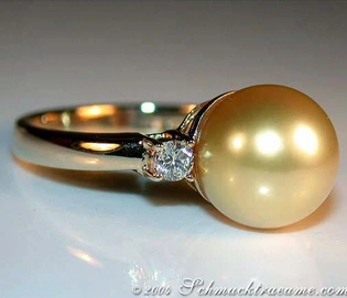 Rechts und links neben dieser Perle wurden je ein Brillant gesetzt.