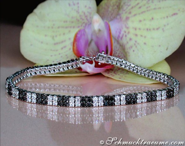 Insgesamt ist das Armband mit 80 weißen Brillanten sowie 80 schwarzen Diamanten ausgefasst.