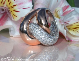 Ein stattliches Schmuckstück in fantastischer Verarbeitung, das zugleich bequem zu tragen ist - so lässt sich unser Brillanten Ring in Roségold am treffendsten beschreiben.