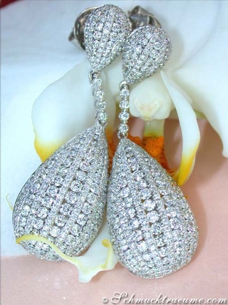 Der gesamte Ringkopf ist komplett in sieben Reihen mit Diamanten ausgefasst - im Wechsel eine Reihe mit größeren Diamanten, die nächste mit kleineren, dann wieder eine Reihe mit größeren Diamanten usw…