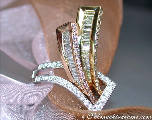 Mit diesem ausgefallenen Diamanten Ring im Gürteldesign, gearbeitet in Weißgold, Roségold und Gelbgold, präsentieren wir ein Juwel der Spitzenklasse in einem höchst ungewöhnlichen Design, das mit viel Liebe zum Detail erschaffen wurde.